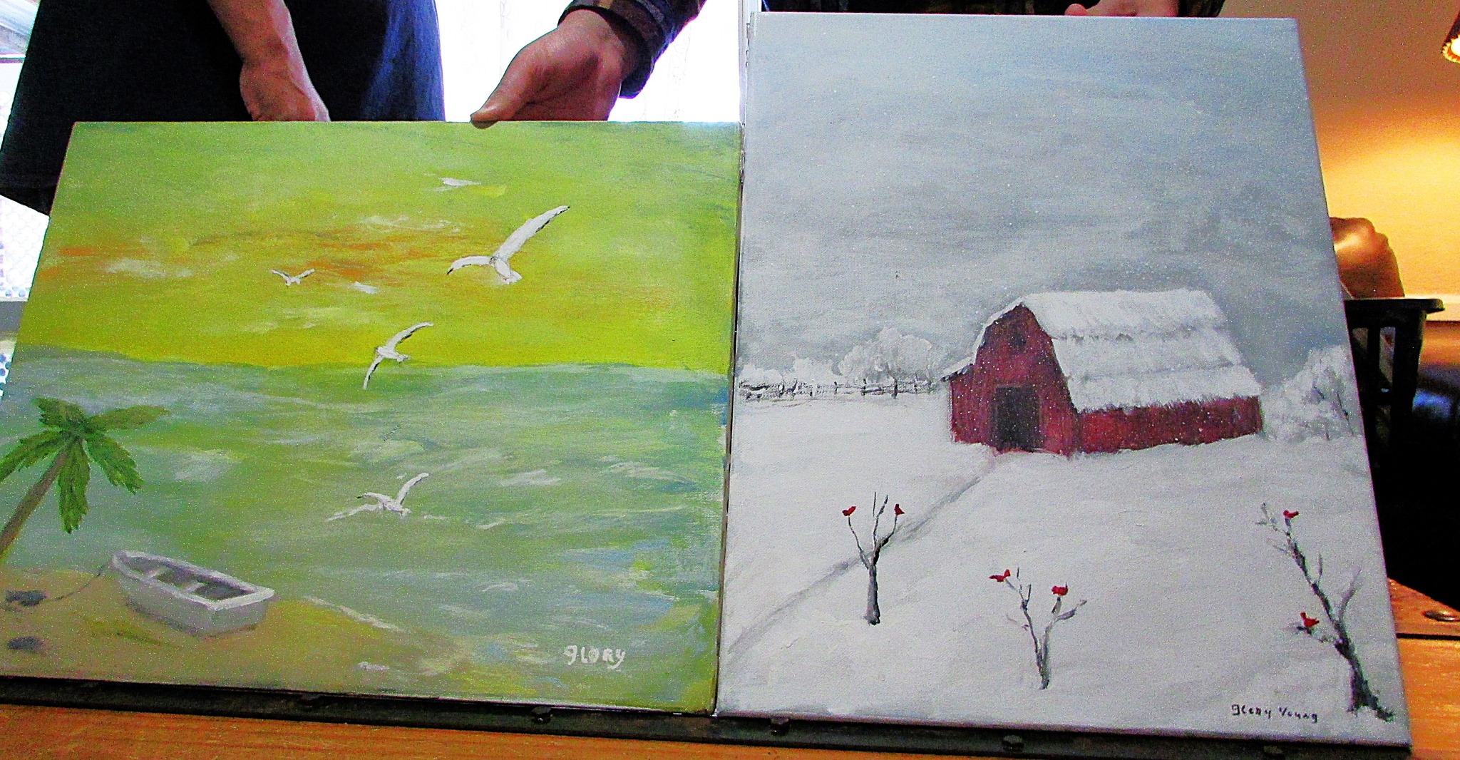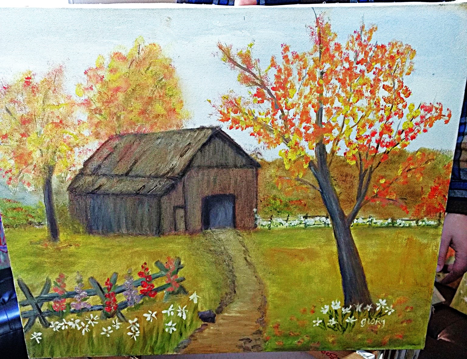 Gloria was an extraordinary, vibrant woman—a three-time breast cancer survivor, a devoted mother and grandmother, and a gifted artist who created thousands of oil paintings inspired by barns, animals, and the changing seasons. As the White County Fair art superintendent, she touched many lives with her creative fire. The paintings below are all featured in the back of Clara’s Canvas, and the last eight are the ones Maya steps into within the story.
